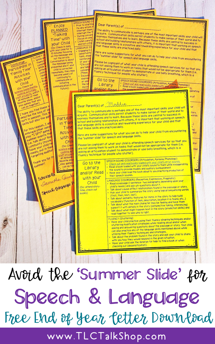The term ‘summer slide’ refers to the decrease in skills related to the summer months when school is no longer in session. Typically, it is in reference to academic skills’ however, many of us see it in speech too. How many times have you had a student or more make HUGE gains during the school year, leave for summer, and return with reduced skills. It is like one step forward and three back, am I right? It is often frustrating for the student, us, the teacher, and the parents!
