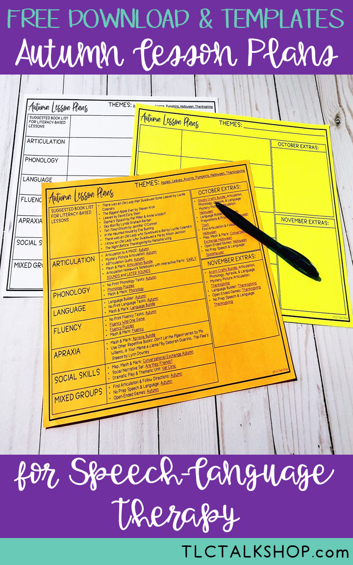 I have created a copy of my Autumn Therapy Planning page to share with you along with some templates in case you want to plan by season and holiday too! You can see some of the books that I plan to use this season for literacy-based therapy too on my lesson plan. You can grab a copy by completing the information below! I hope it helps you plan our your lessons by season and saves you as much time as it saves me