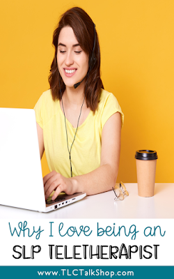 Yes, I’m living the dream on the days that I work as a teletherapist! Huge caseloads have been an issue in pretty much every school, district, and state that I have worked as an on-site SLP. When I am providing services via teletherapy, my groups are limited typically to two students. The max I have had is three students but that is rare for me! Can you imagine how much more can we get done and the great amount of growth our students can make when we are only seeing one to two students each session?